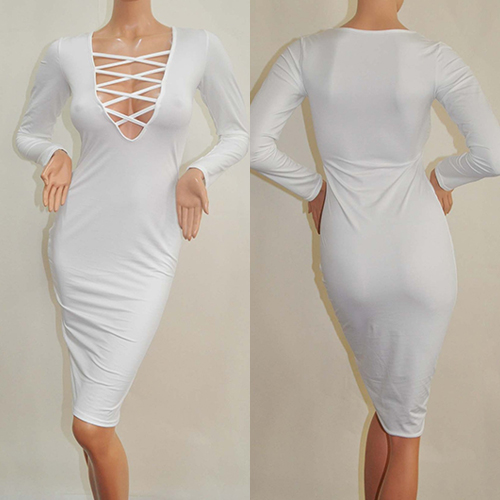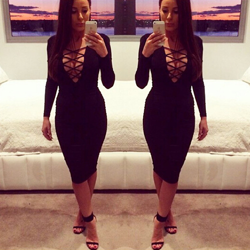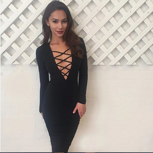 a fit silhouette can perfect set off your graceful posture. Plus,its strappy deep v-neck design