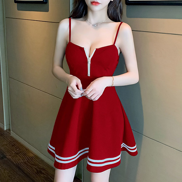 This dress is characterized by sling style,with sexy deep v-neck gives you the chance to show your seductive cleavage and sparkle necklace. Flowing hemline with gauze spliced design makes it more sexy and sultry. Try to adding a wide brim straw hat for sunny days!