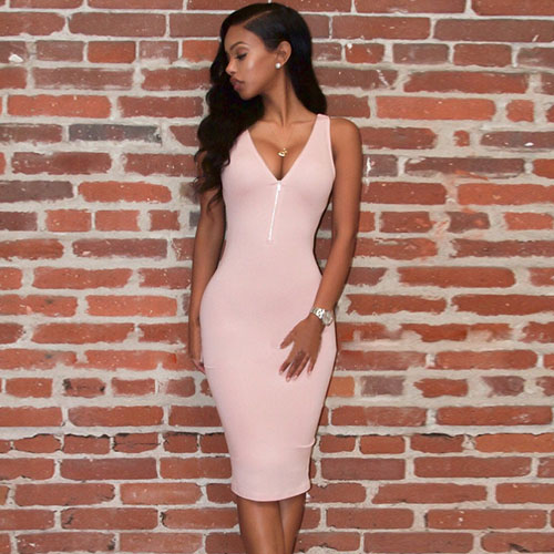 Solid color style,with v-neck design,neckline with zipper design. Slim