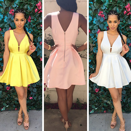 This sleeveless dress knows how to make you look more charming and sultry. Solid color style,