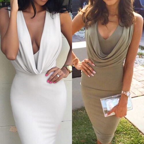 Let your dress do the flirting for you in this sleeveless dress. Features solid color style,with deep