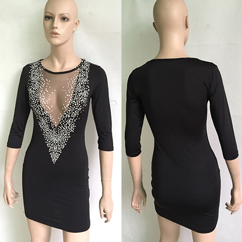 This dress features deep v-neck design,neckline with sequins for decoration,sexy and sparkly.