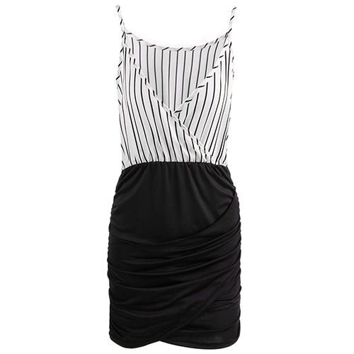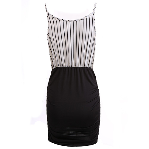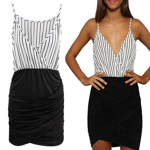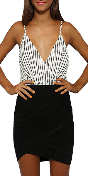 This sling dress knows how to make a stunning statement with its deep v-neck and striped spliced design.