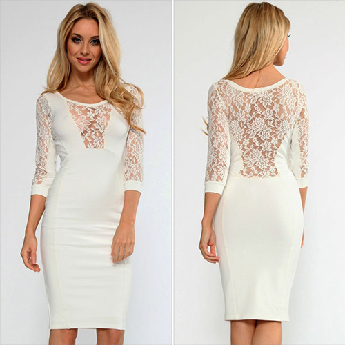 Sexy Hollow Out Lace Spliced 3/4 Sleeve Package Hip Dress