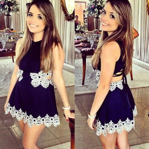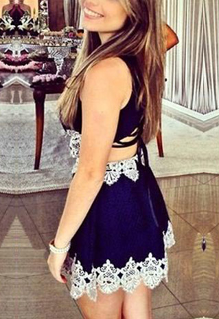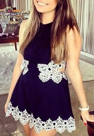 This dress features lace spliced design,filled with feminine and sweet sense. Waist part