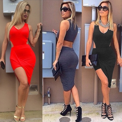 So chic and sexy. Waist part with hollow out design. Solid color style,