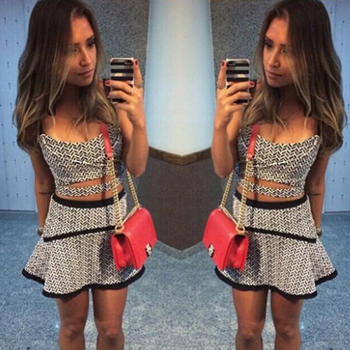 Houndstooth print pattern,fashion and popular. Tops with sling style,dew navel design,sexy and charming. Your sexy flavor and seductive curve will shine in this dress.