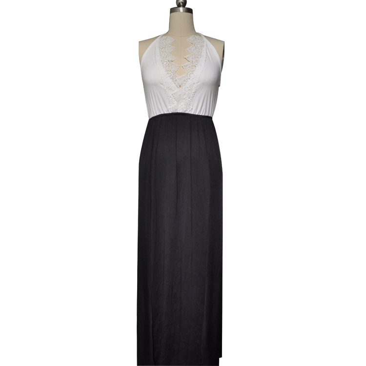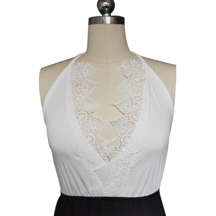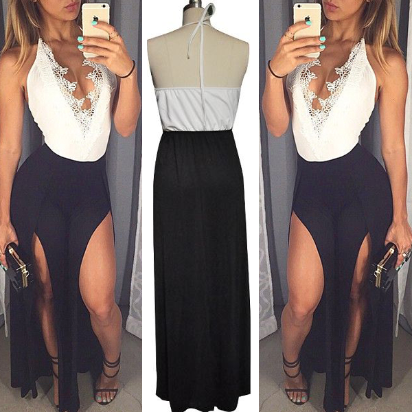 Combo of white and black,classical and stylish. It features a deep v-neckline,with lace spliced