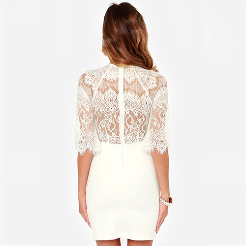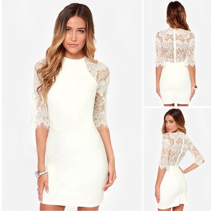 Your sexy flavor and charming figure will shine in this dress. It features lace spliced design,filled with sweet and seductive flavor. Half sleeve,round neck,slim fit and package hip design,perfect show your slender curve.