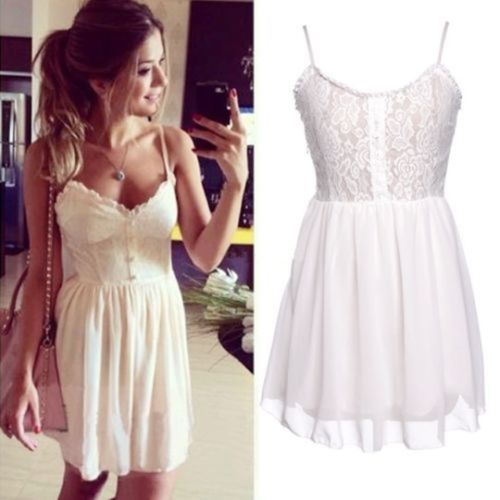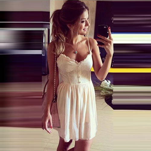 Sexy Lace Spliced V-neck High Waist Sling Dress