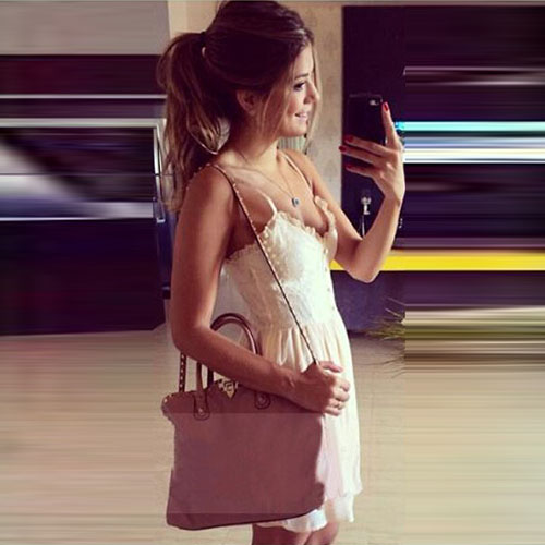 Sling style,with lace spliced design,filled with sexy and feminine flavor.