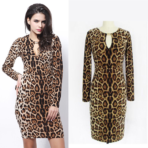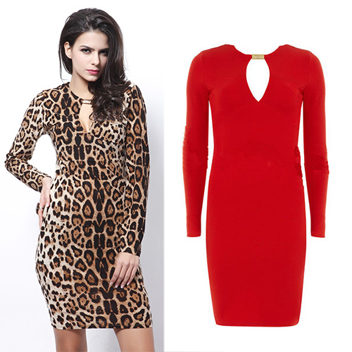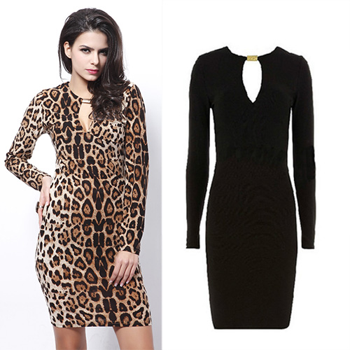 Features leopard/solid color design. Chest part with hollow out design,showing your seductive cleavage. Long sleeve,slim fit and package hip design,showing your sexy and charming curve.