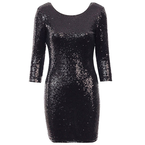 round neck and a fit silhouette design,can perfect set off your graceful posture. Its sequins design
