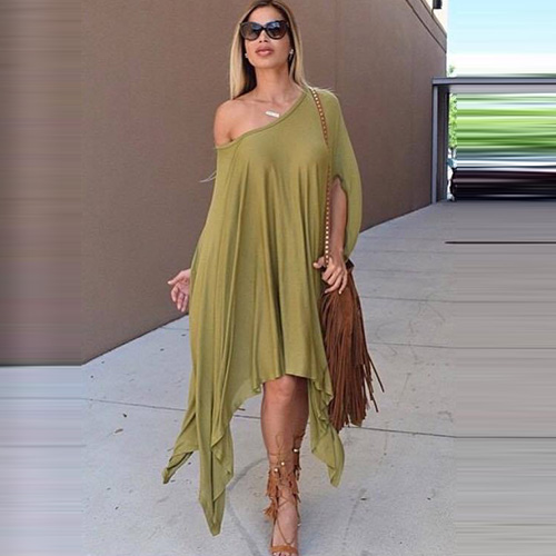 its oblique shoulder and irregular hem design adds some sexy and charming sense.