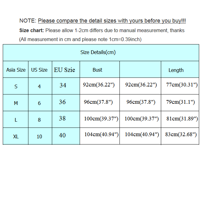 S : Bust : 92cm(36.22"); Waist : 92cm(36.22"); Length : 77cm(30.31");