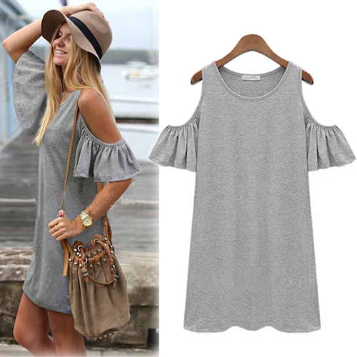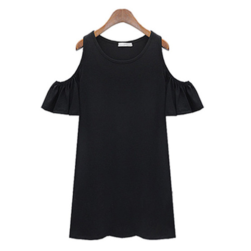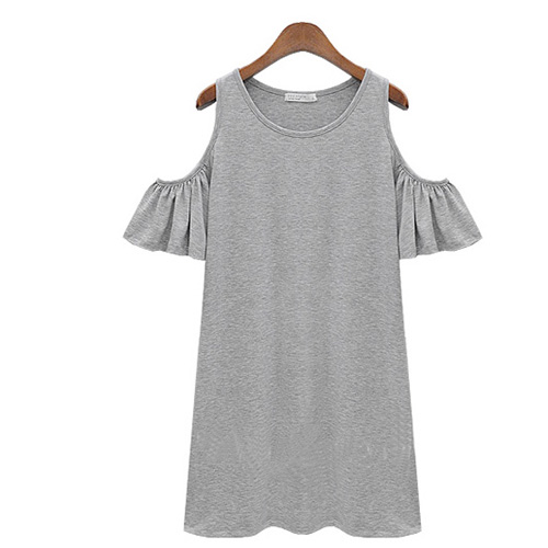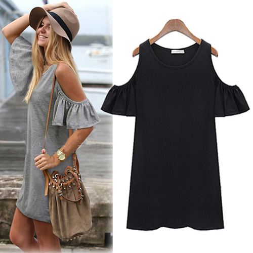 Show your sexy flavor and sweet sense with this dress. Features solid color,off-shoulder style,round neck and flouncing sleeve design. Take it to spend a cool and wonderful summer.