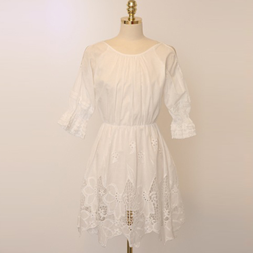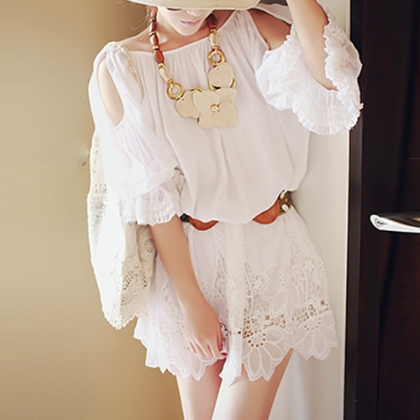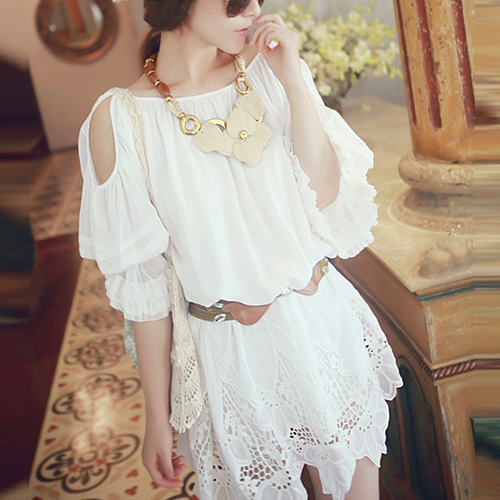 Sexy Off-shoulder Lace Crochet Dress with Waistband