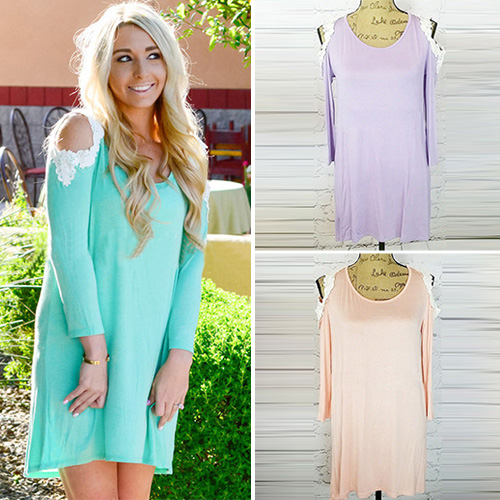 to see how sophisticated you are when you wear this dress. Long sleeve with off-shoulder and lace spliced