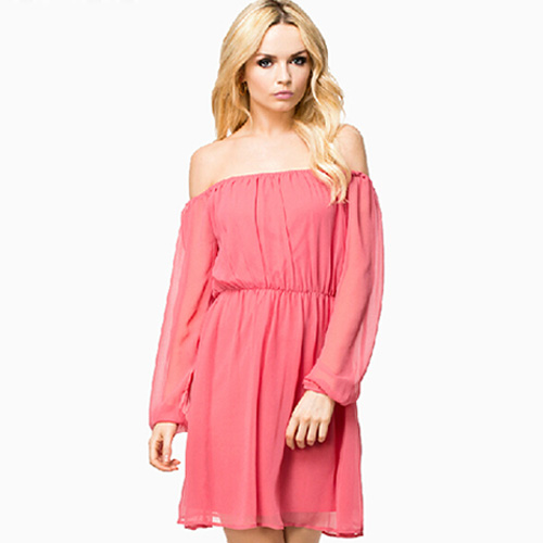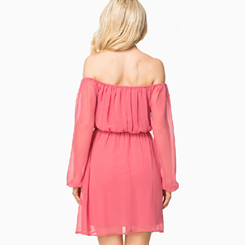 Crafted from chiffon material,soft,skin-friendly and comfortable. Featuring pure color,slash neck off-shoulder style with long-sleeved. Flowing hemline and elastic waist help to show your slender figure.