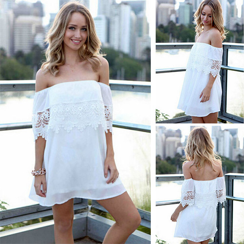 Show your sexy flavor and seductive curve in this dress. It features slash neck style,