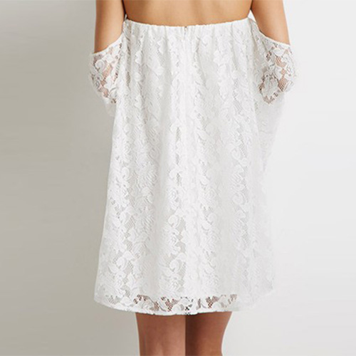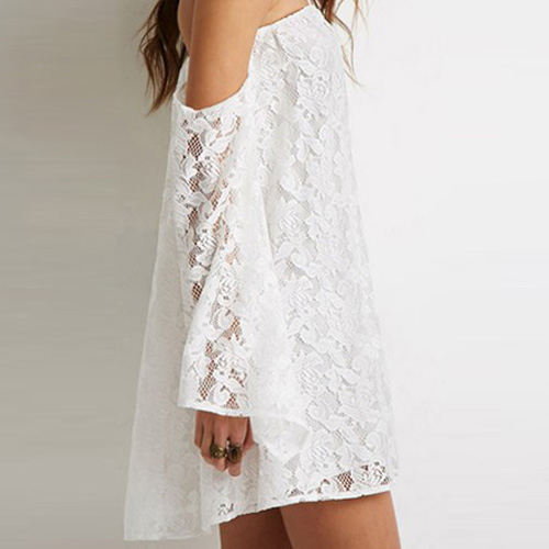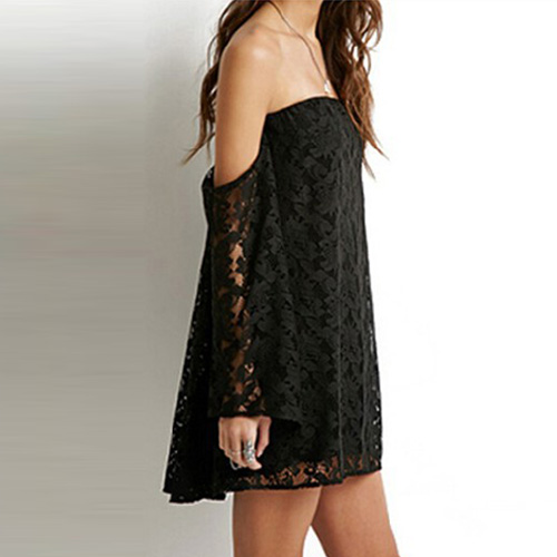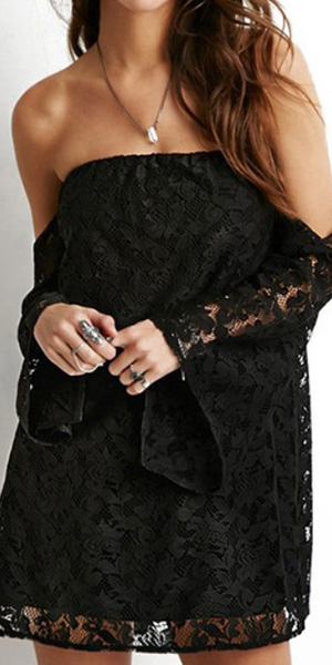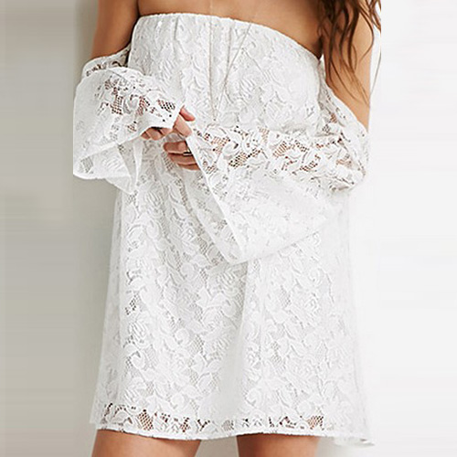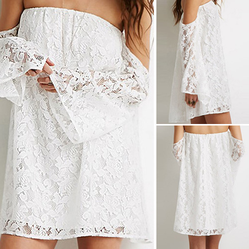 Sexy Off-shoulder Slash Neck Trumpet-sleeve Lace Dress