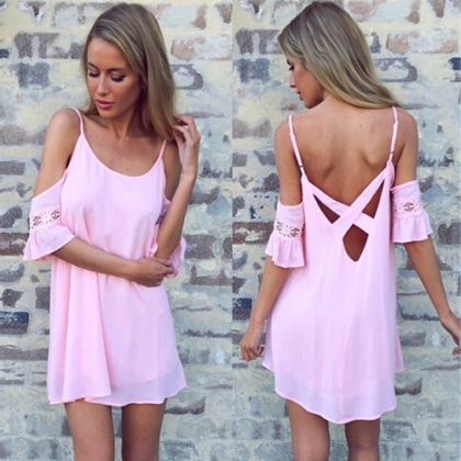 This dress features sling style,with off-shoulder design and trumpet sleeve style,chic and sexy.