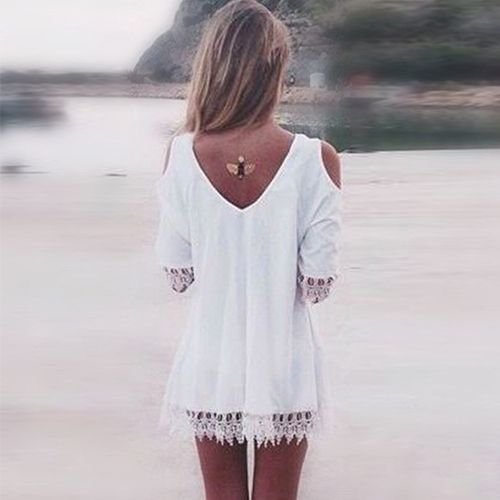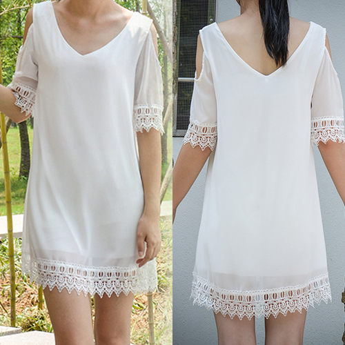 and its off-shoulder,v-neck and lace spliced design makes it more sexy. Show your summer style