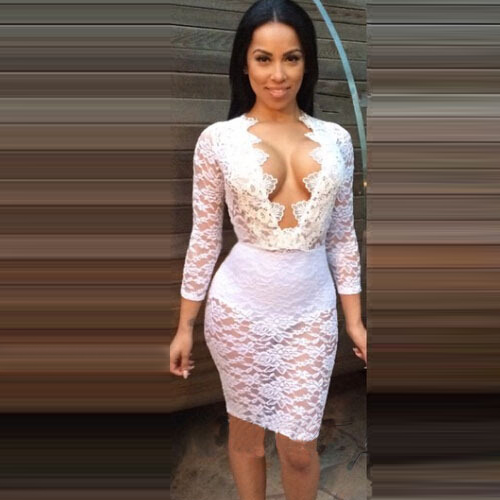 lace spliced and deep v-neck design makes this dress so sexy and sultry. It would be a perfect idea
