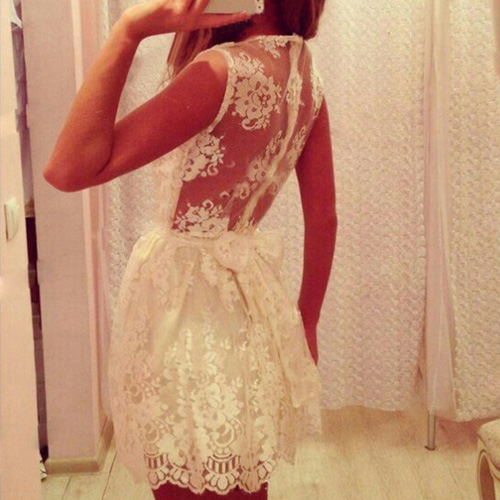This dress features see-through lace spliced design,sexy and seductive. Sleeveless and