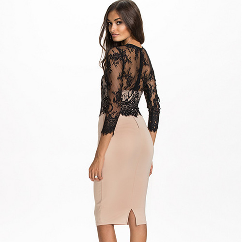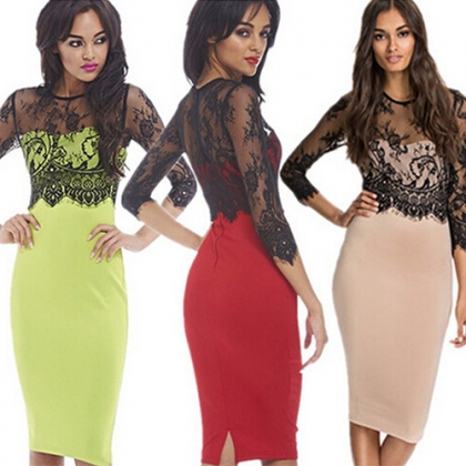 Very charming and feminine in this dress. It features see-through lace spliced design,sexy and filmy beauty.
