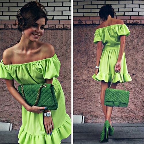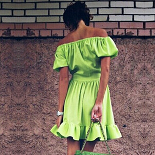 Sexy Slash Neck Flouncing Hem Solid Color Party Dress