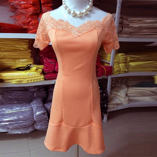 This dress features orange color,can perfect set off your fair skin. Sexy slash neck style,