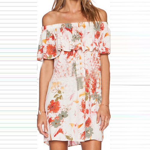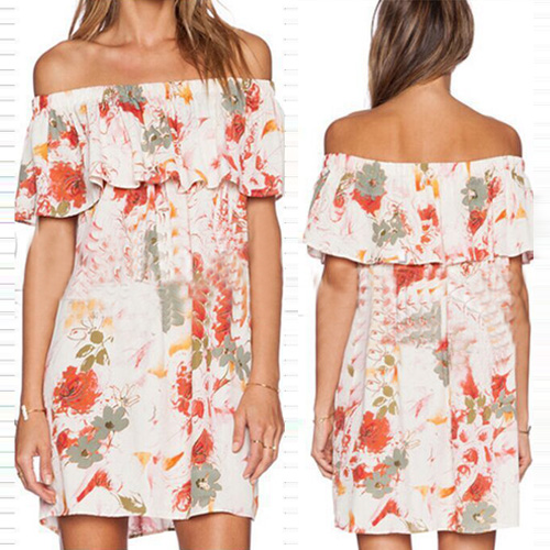 and everything in between. Sweet floral print pattern,with sexy slash neck and off-shoulder design.