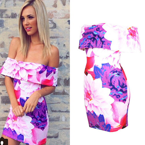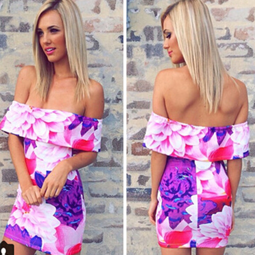You must eager to express your sexy flavor and seductive curve and receive envious eyes,right? Then try this dress. It features off-shoulder style,with sweet floral print pattern. Slim fit and package hip design,perfect outline your charming curve.