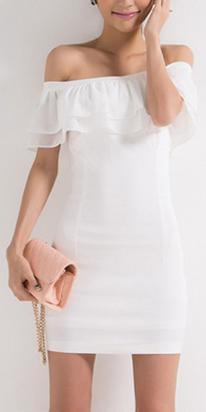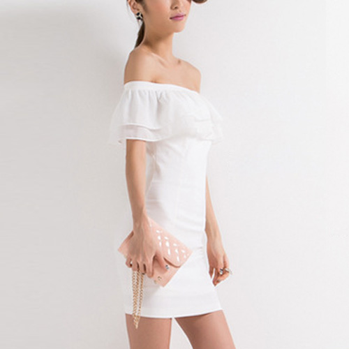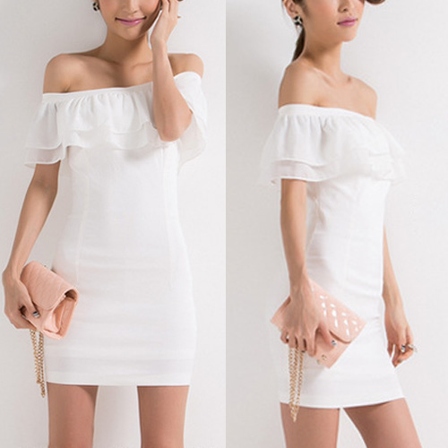 Sexy Slash Neck Off-shoulder Flouncing Slim Fit Dress