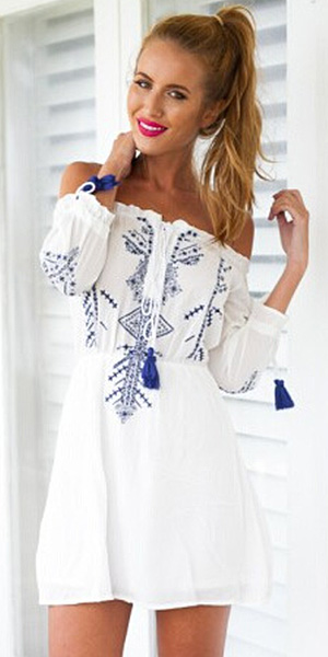 and off-shoulder design. High waist design can perfect show your slender figure. Just add a cute clutch and fancy