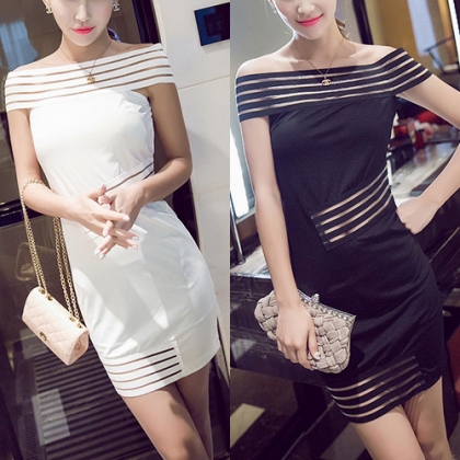 for parties and gatherings. Its slash neck and see-through gauze splice design makes it look so sexy