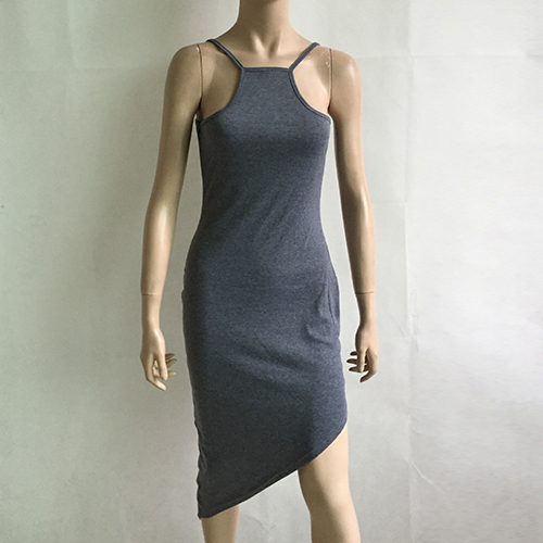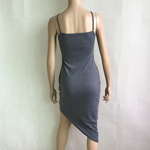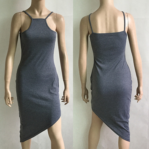 Solid color design is always classic. The dress adopts sling and irregular hem design ,
