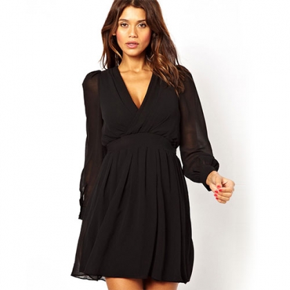 When you need a night out and dress that can keep up,grab the Chiffon Dress.Featuring long sleeves,sexy deep V neck,slimming back belt,this semi-sheer little number will have you captivating and slaying the whole club.Pair it with black heels and you're ready to go.