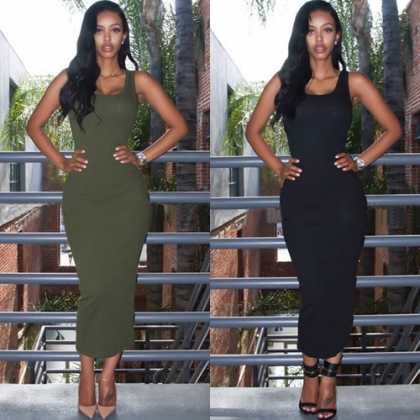 Sexy Solid Color Sleeveless Fit Sling Sheathy Racerback Dress