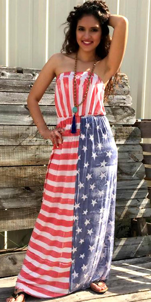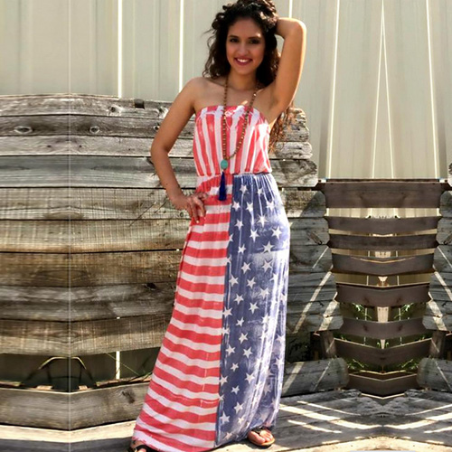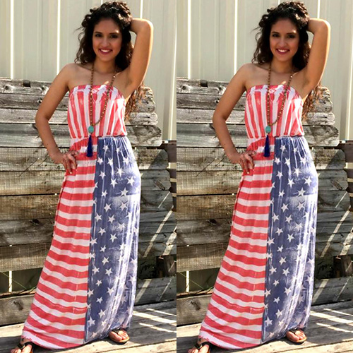 This dress features strapless style,shows your charming shoulder and fair skin. Chic American Flag print