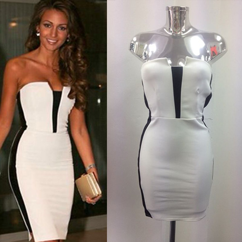 Look at this dress,it features strapless style,with contrast color and slim fit design,perfect