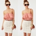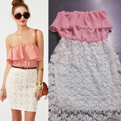 This dress features strapless style,neckline with flouncing design,sexy and sweet.