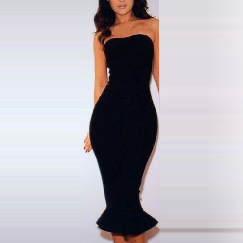 Strapless style,with gathered waist and fishtail hemline design,feminine and sexy.