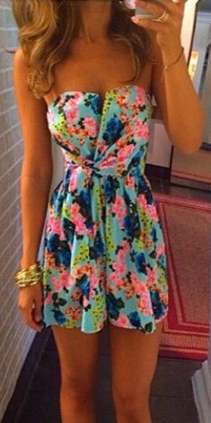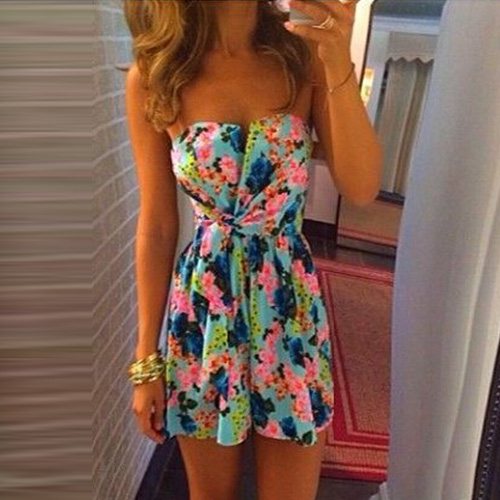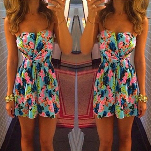 This strapless floral print party dress will make you look more charming and eye-catching.
