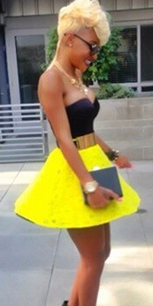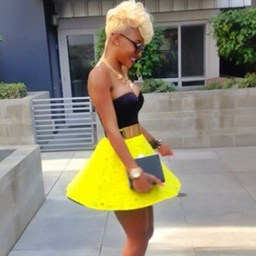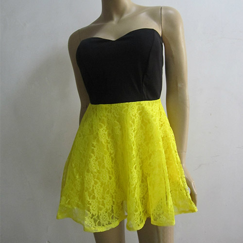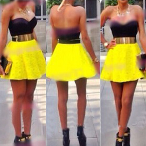 Strapless style,with contrast color and high waist design. Pairing it with your sparkly