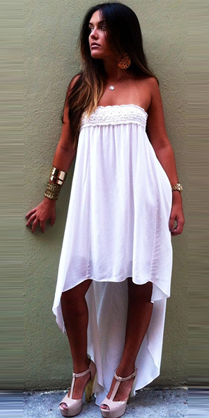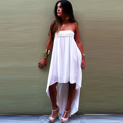 irregular hemline design. Try to adding a sparkle necklace and a sexy heels,you