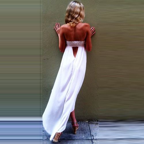 Strapless style,with lace spliced design makes it so feminine. The best part is its