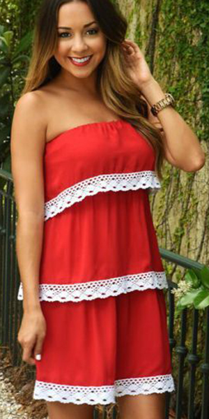 Light and airy, and made for a day spent under the sun, this strapless cake dress would be