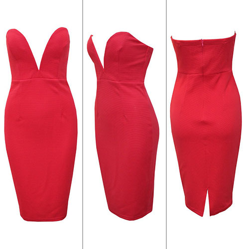 Your seductive figure and beautiful skin will shine in this sexy dress and absolutely will make men drool. Featuring pure color,a solid colorway. Strapless style,off-shoulder and backless with deep v-neck design,sexy and charming. Wear it to the party to be the sexy queen!